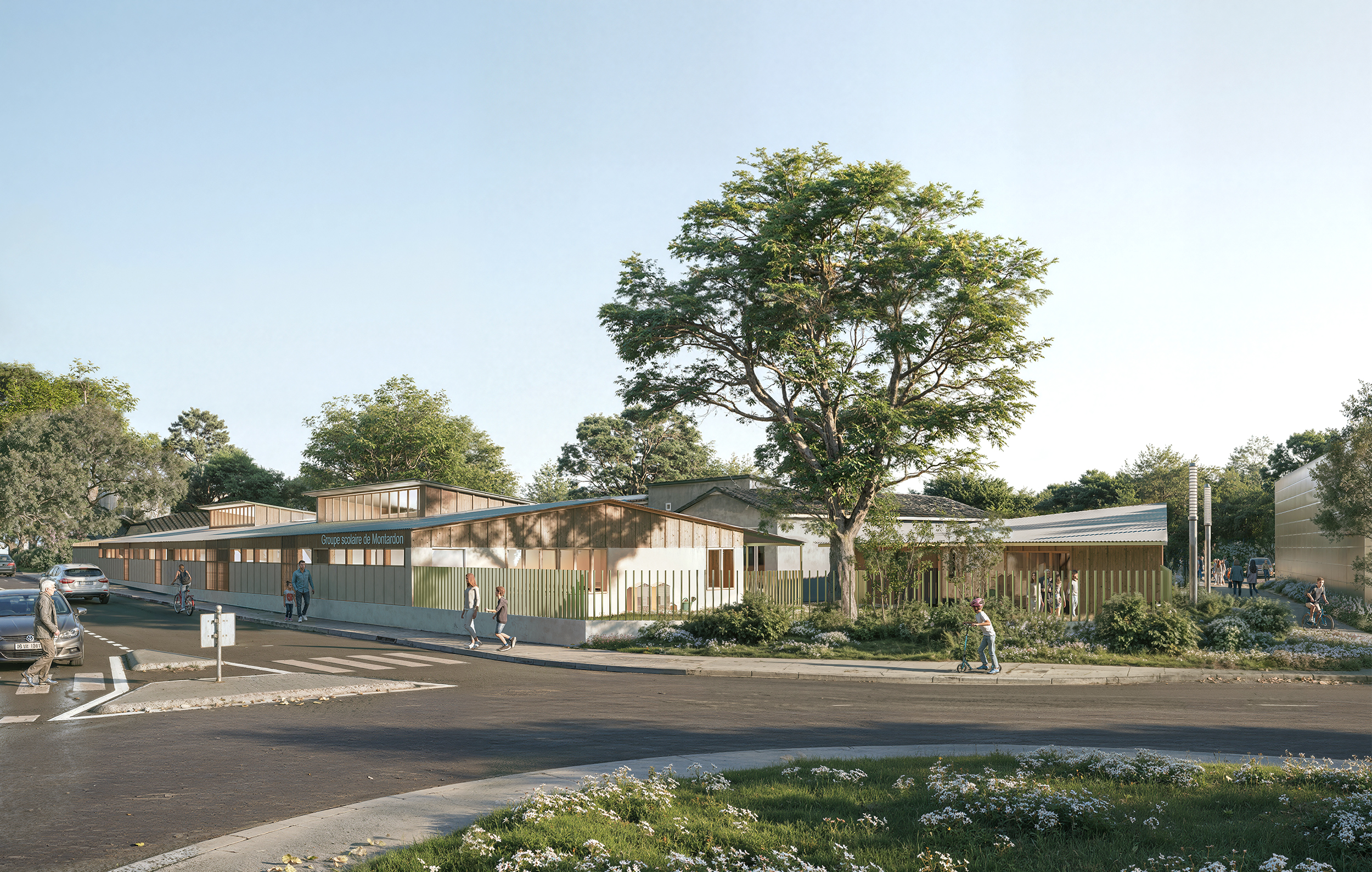 La commune de Montardon se trouve au Nord de Pau. Le site de l'école abrite aujourd'hui plusieurs entités : les école maternelle et élémentaire, le réfectoire, le centre de loisirs ainsi que la bibliothèque. Le projet porte sur la construction d'un nouveau bâtiment pour l'école primaire, avant démolition d'une partie des bâtiments existants qui ne répondent plus aux besoins de l'école ni ne permettent d'accueillir les enfants dans de bonnes conditions.